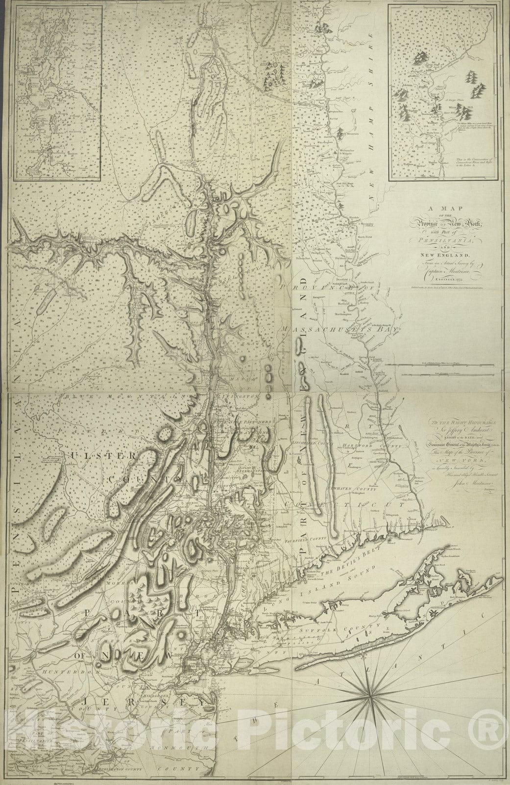 Historical Map, A map of the Province of New York, with part of Pensilvania, and New England : from an actual survey by Captain Montresor, engineer, 1775, Vintage Wall Art