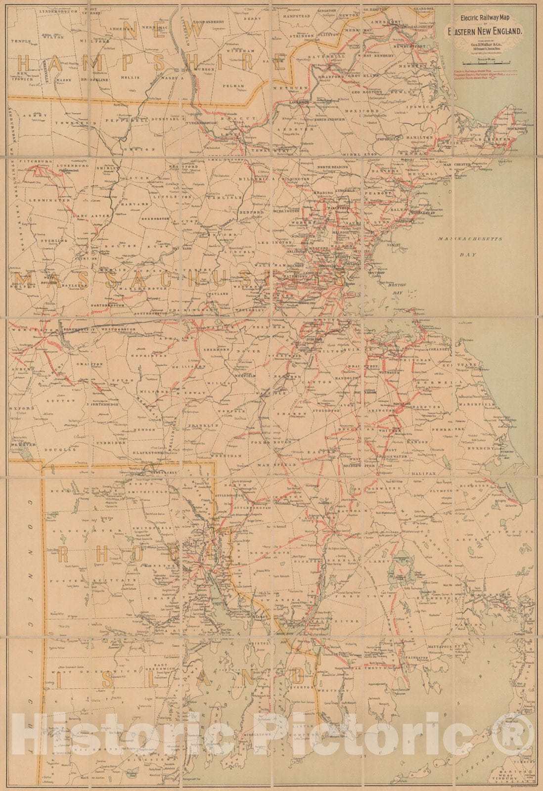 Historic Map : Rhode Island, Electric Railways in Eastern New England 1905 Transit Railroad Catography , Vintage Wall Art