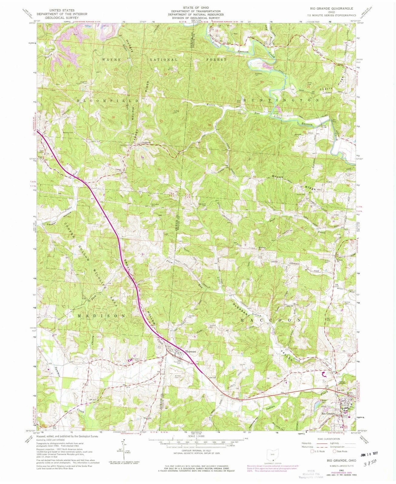 1961 Rio Grande, OH - Ohio - USGS Topographic Map