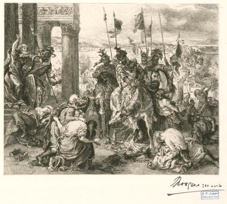 Art Print : 1889, Entree des croises A Constantinople, d'apres Delacroix. - Vintage Wall Art
