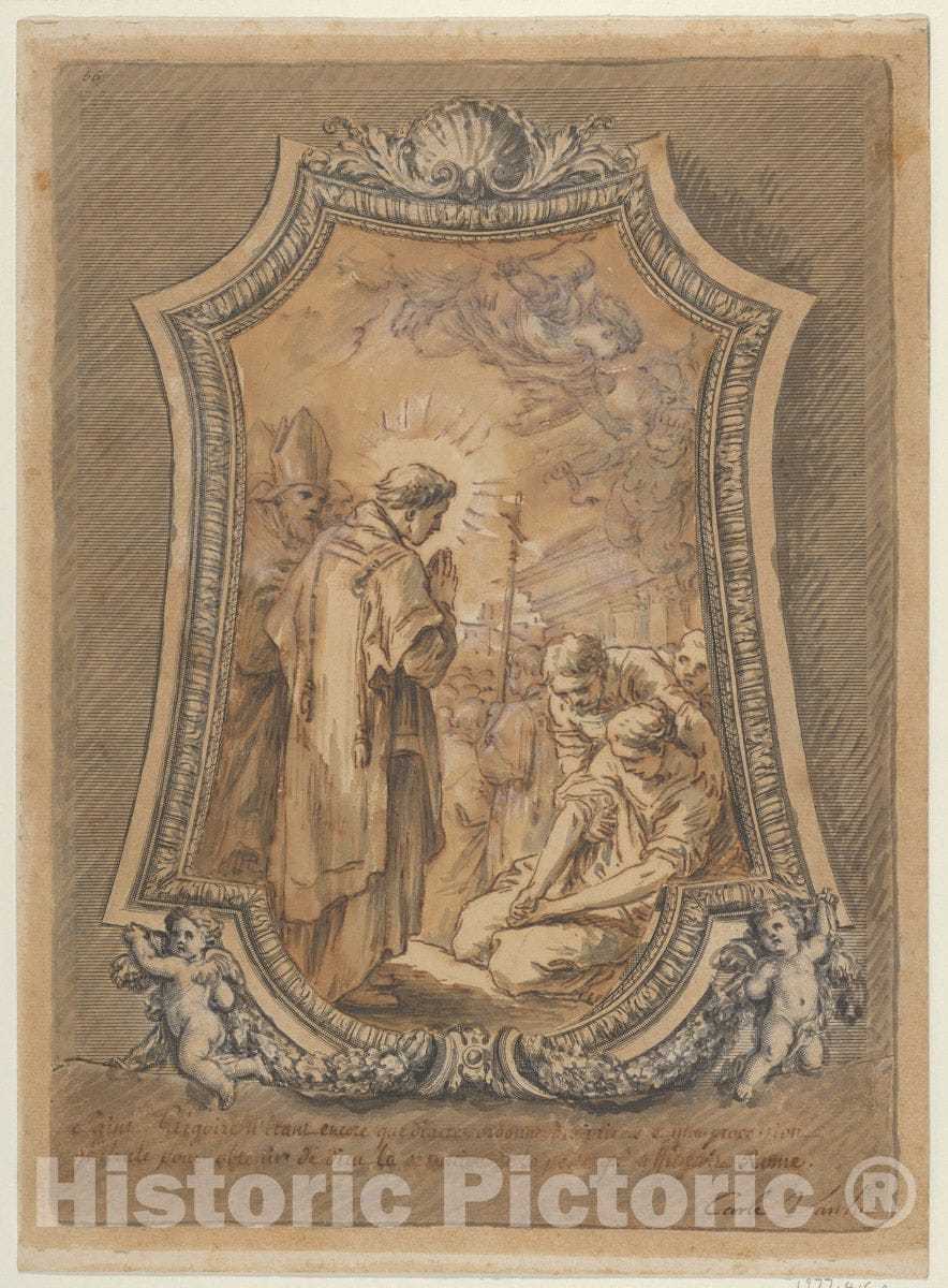 Art Print : Carle (Charles André) Vanloo - Saint Gregory as Deacon Directing Prayers and Processions for The Cessation of The Plague : Vintage Wall Art