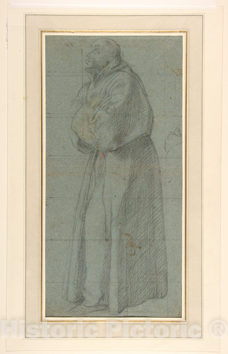 Saint Francis - Italian, Sermoneta 1521–1575 Rome - Artist Nationality: Italian - Original Medium, Materials or Technique: Black chalk on blue paper, squared in black chalk