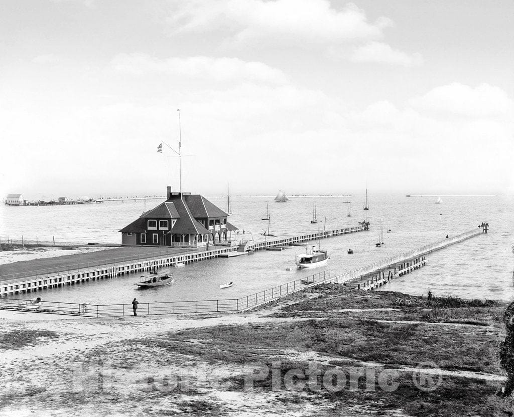 Milwaukee Historic Black & White Photo, The Milwaukee Yacht Club on the Bay, c1890 -