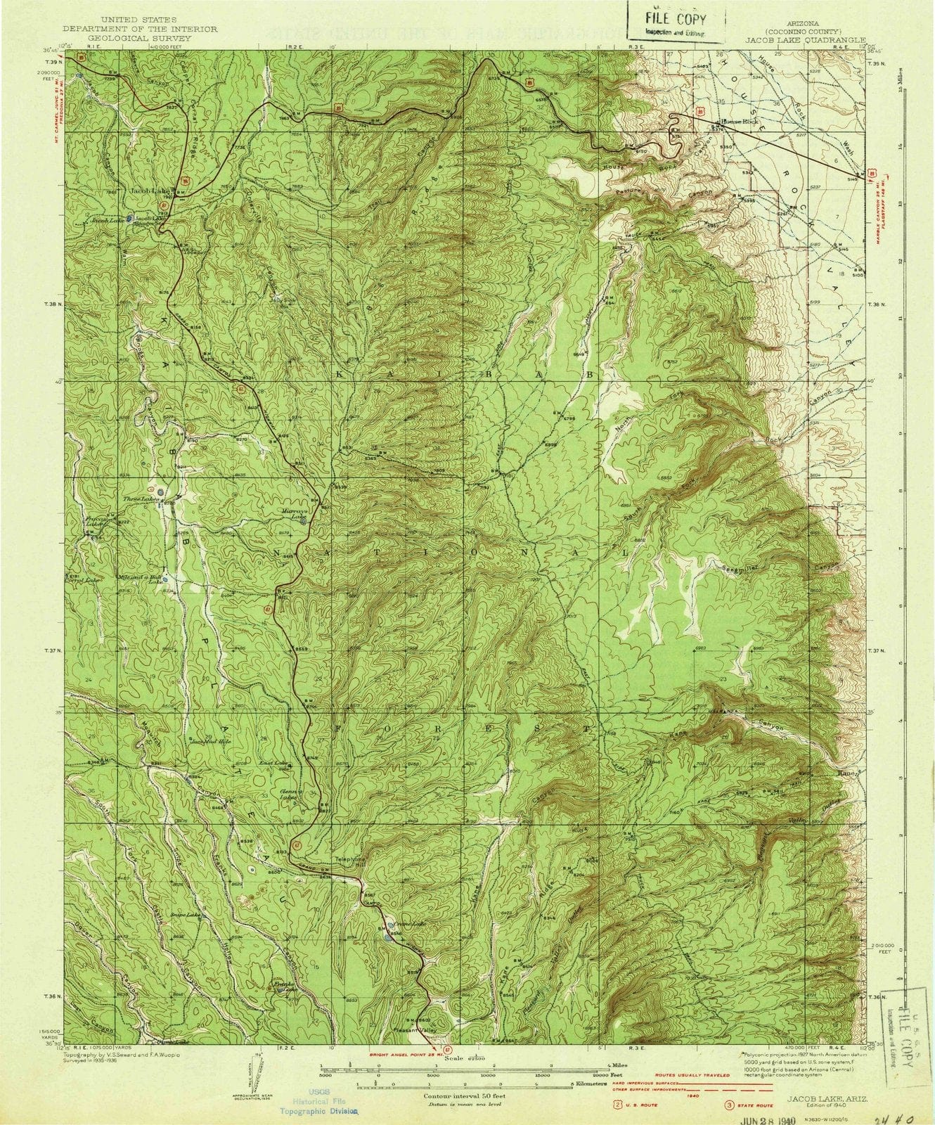 1940 Jacob Lake, AZ - Arizona - USGS Topographic Map