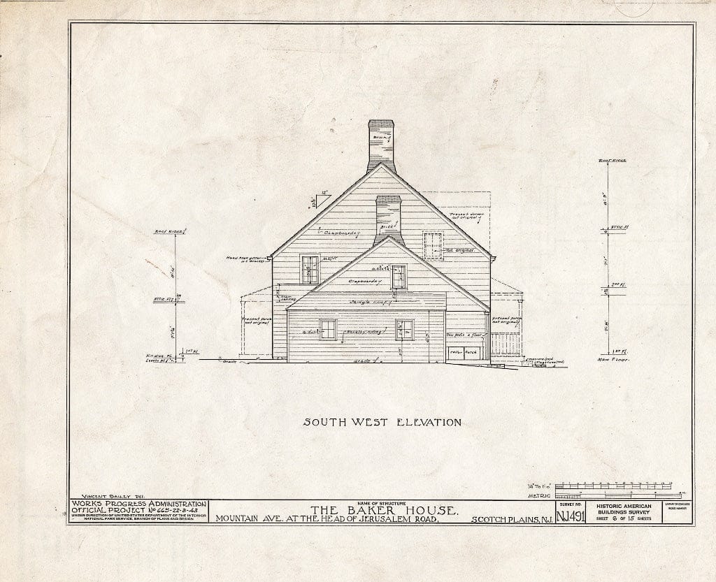 Blueprint HABS NJ,20-SCOPL,4- (Sheet 6 of 15) - Baker House, 2511 Mountain Avenue & Jerusalem Road, Scotch Plains, Union County, NJ