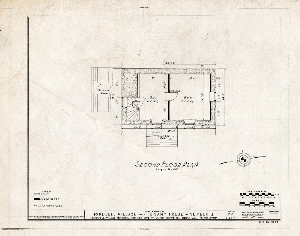 Blueprint HABS PA,6-HOPVI,19- (Sheet 2 of 7) - Hopewell Village, Tenant House No. 1, State Route 345 Vicinity, Hopewell, Chester County, PA