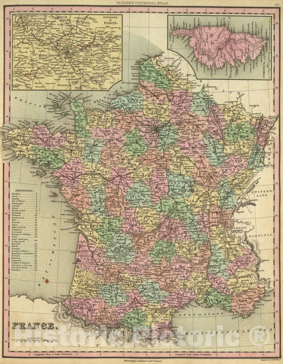 Historic Map : 1836 France. - Vintage Wall Art