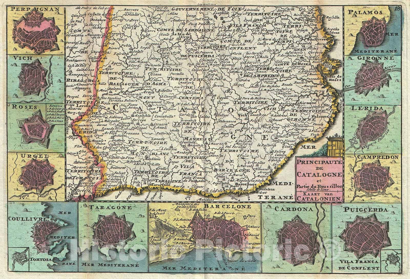 Historic Map : Catalonia, Spain "Barcelona", La Feuille, 1747, Vintage Wall Art
