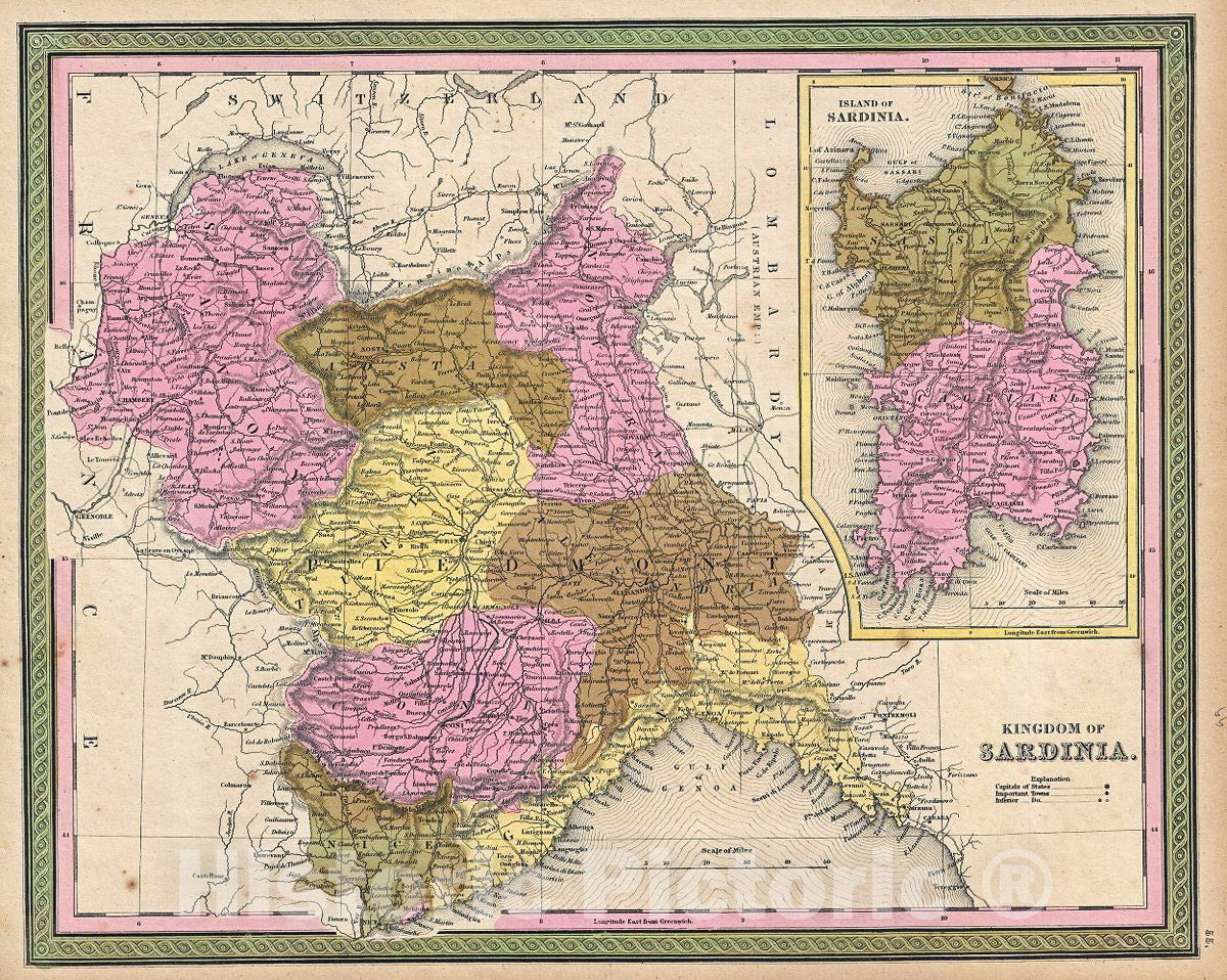 Historic Map : Mitchell Map of Italy: Kingdom of Sardinia and Piedmont, 1849, Vintage Wall Art