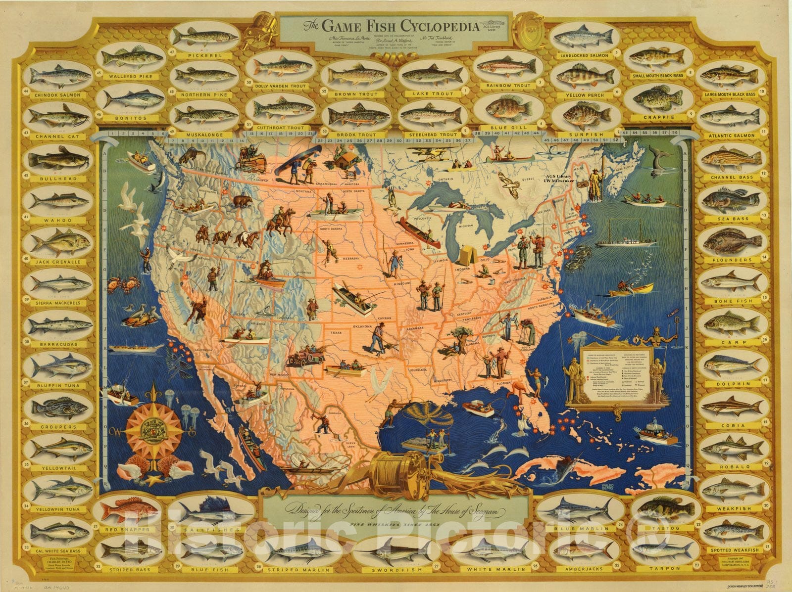 Map : United States 1947, The game fish cyclopedia , Antique Vintage Reproduction